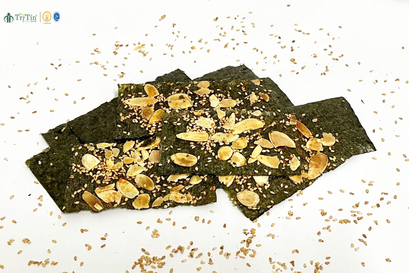 Seaweed snack with stuffing is made from Porphyra seaweed - Vietnamese seaweed, almonds, sesame seeds with advanced production process to ensure each snack meets the standards of HACCP quality management system. We will bring you a unique culinary experience with sweet, delicious, crispy flavors creating an attractive, delicious snack product, enjoying the natural flavor of Vietnamese seaweed.