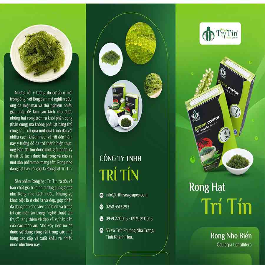 Sản phẩm Rong hạt Trí Tín ra đời về bản chất giá trị dinh dưỡng cũng giống như Rong nho tách nước. Nhưng sự khác biệt là ở chỗ lạ và đẹp, góp phần đa dạng hơn cho việc chế biến và trang trí các món ăn trong “nghệ thuật ẩm thực”, tăng thêm vẻ đẹp và sự hấp dẫn của các món ăn. Nhờ vậy nên nó đã được sử dụng rộng rãi trong các nhà hàng cao cấp và xuất khẩu ra nhiều nước như hiện nay.