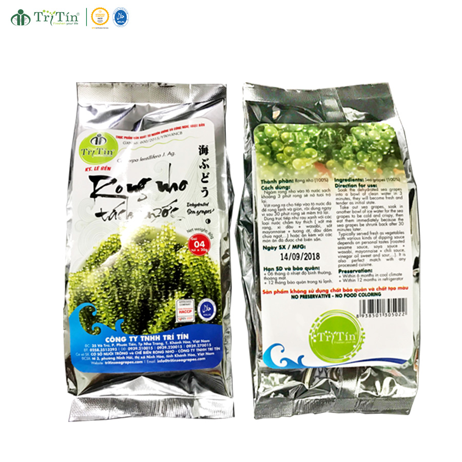 Rong nho Trí Tín đạt chất lượng theo chuẩn mực Quốc tế, được cấp chứng nhận HACCP, HALAL và Code xuất khẩu TS 611. Được xuất khẩu trực tiếp sang nhiều nước: Nhật Bản, Hàn Quốc, Hoa Kỳ, Trung Quốc, Singapore... Luôn được khách hàng trong và ngoài nước tin dùng và đánh giá cao về chất lượng.