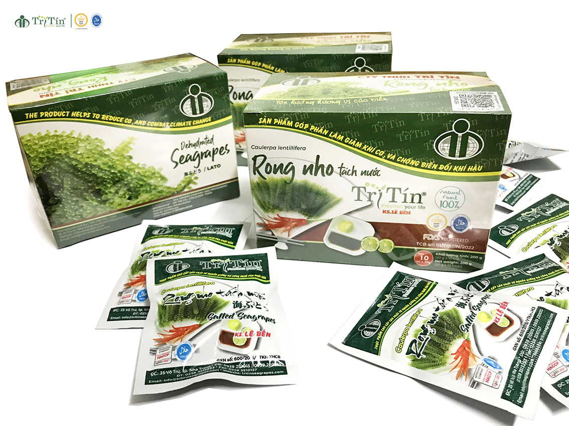 Đạt chất lượng theo chuẩn mực Quốc tế, được cấp chứng nhận HACCP, HALAL và Code xuất khẩu TS 611. Sản phẩm Rong nho Trí Tín hộp 200g đang là sản phẩm bán chạy nhất. Được xuất khẩu trực tiếp sang nhiều nước: Nhật Bản, Hàn Quốc, Hoa Kỳ,.. Luôn được khách hàng trong và ngoài nước tin dùng và đánh giá cao về chất lượng.