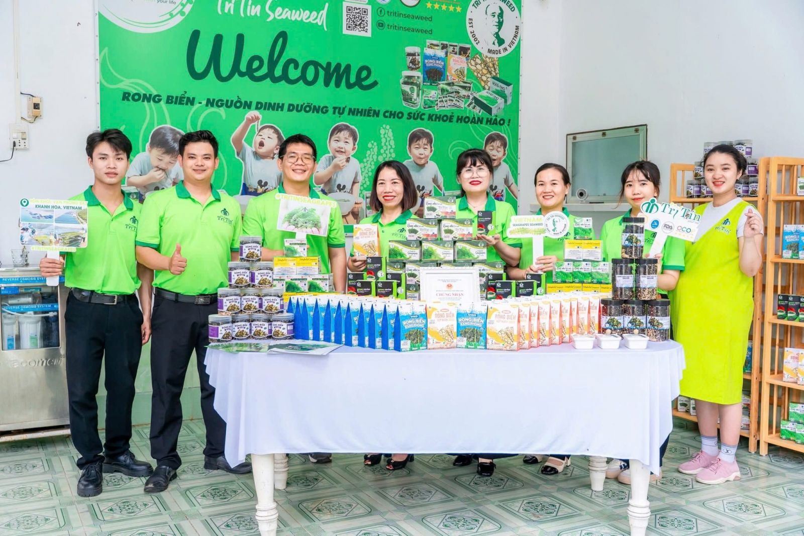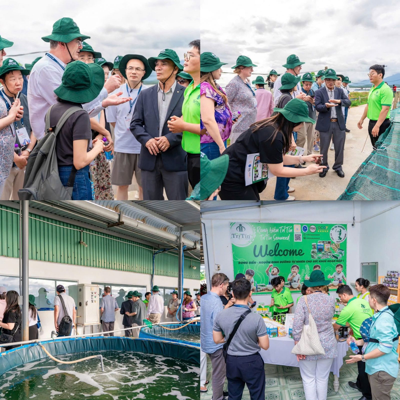 Tại sự kiện, đoàn khách quốc tế không chỉ được nghe giới thiệu về quy trình trồng, thu hoạch và chế biến rong biển, mà còn tận mắt chứng kiến từng công đoạn sản xuất khép kín, đạt chuẩn HACCP và OCOP 5 sao cấp Quốc gia – những chứng nhận thể hiện sự chuyên nghiệp và nghiêm túc của Trí Tín trong từng sản phẩm.