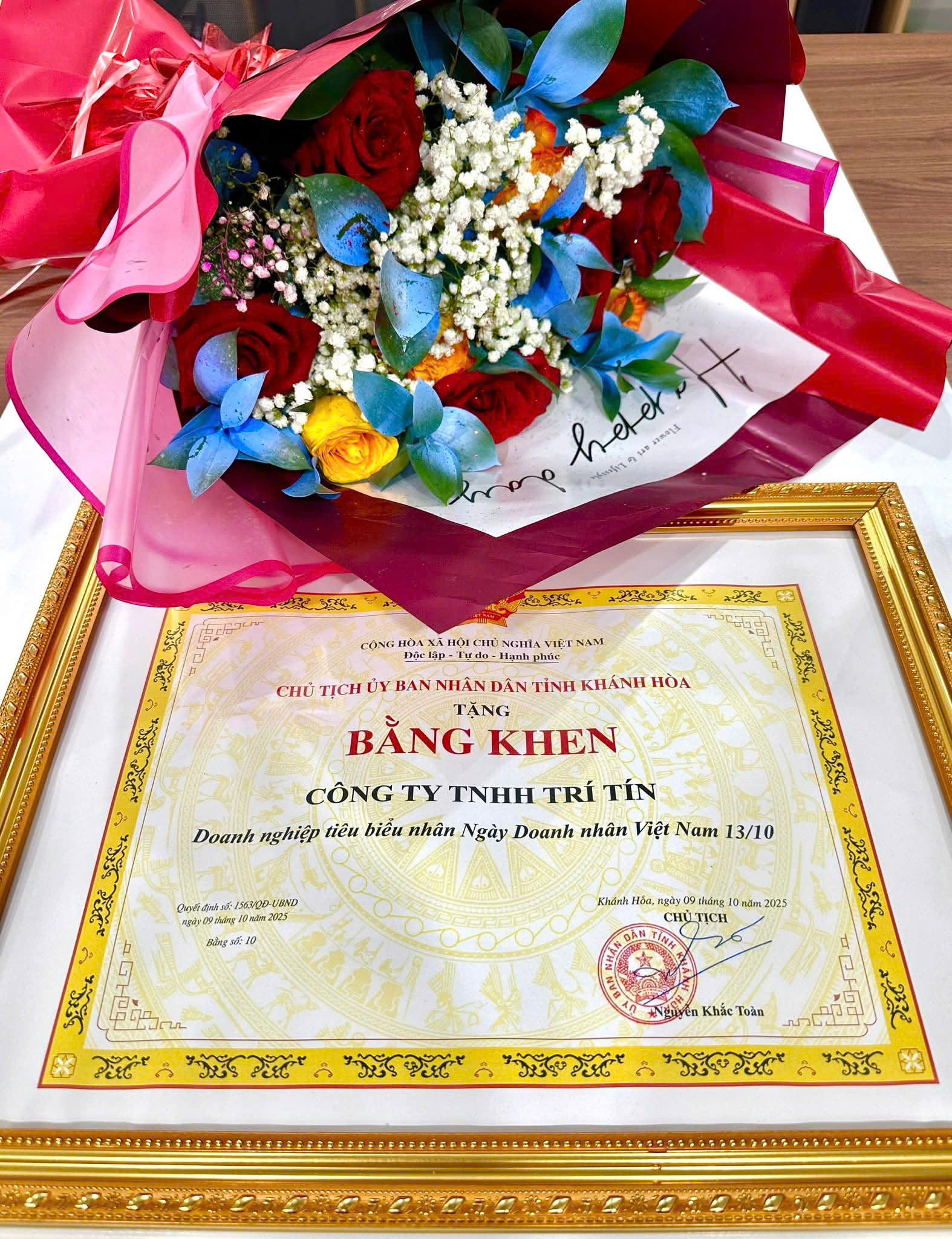 Nhân dịp Ngày Doanh nhân Việt Nam 13/10, Công ty TNHH Trí Tín vinh dự được Chủ tịch Ủy ban Nhân dân tỉnh Khánh Hòa trao tặng Bằng khen “Doanh nghiệp tiêu biểu”, ghi nhận những đóng góp tích cực của doanh nghiệp trong hoạt động sản xuất – kinh doanh, đổi mới sáng tạo và phát triển kinh tế địa phương.